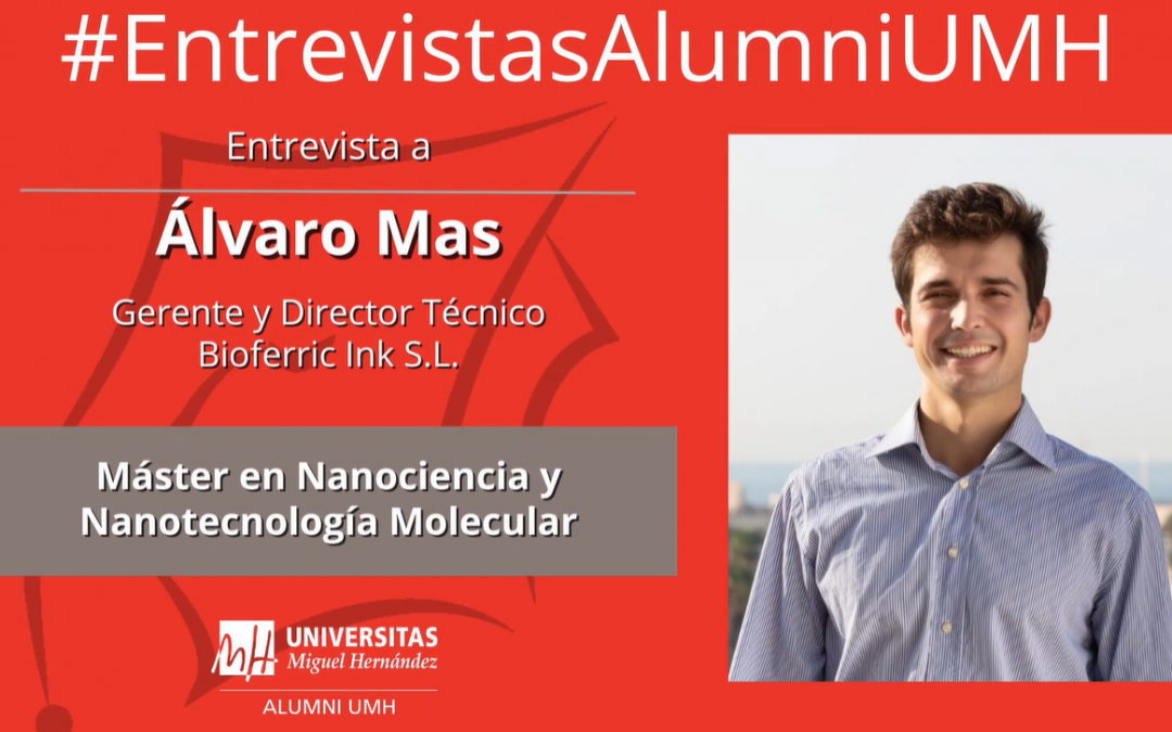 La experiencia del estudiantado refleja mejor que nada el valor de una formación especializada. En esta entrevista, un egresado del Máster en Nanociencia y Nanotecnología Molecular comparte su recorrido académico y profesional tras finalizar el programa. Su testimonio muestra cómo una formación multidisciplinar y orientada a la investigación abre oportunidades en ciencia, tecnología e innovación. Os compartimos esta entrevista realizada desde el Servicio Alumni de la UMH a nuestro egresado Álvaro Mas, fundador y CEO de Bioferric Ink S.L.